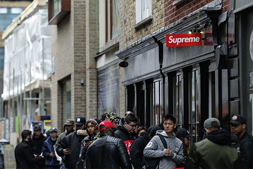 Its shoes, clothing, and accessories are sold in a limited quantity and make a killing in the resell market. The distinctive red box logo with “Supreme” in white Futura Heavy Oblique is largely based on Barbara Kruger’s propaganda art.
